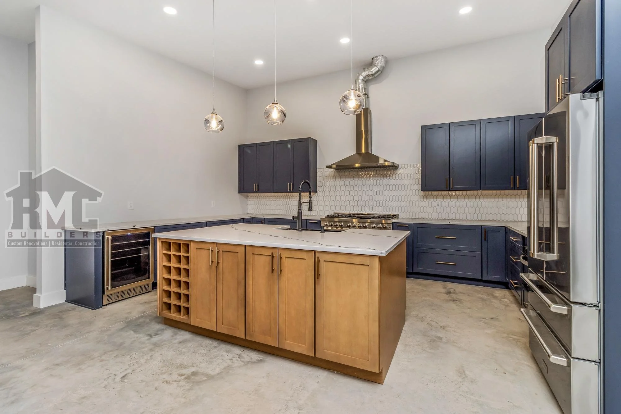 Inside, the transformation was dramatic. What was once bare ground is now a finished concrete slab floor that anchors the entire home. The flooring maintains an industrial feel while offering durability and a sleek, contemporary look—especially striking in the expansive great room.
